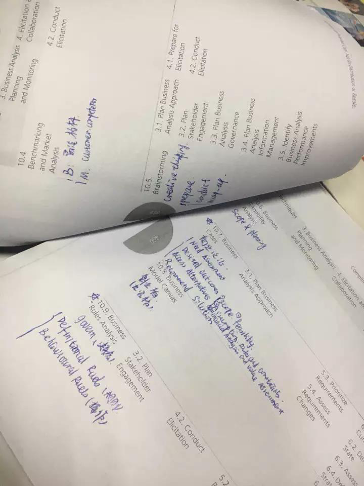 甚至在CH6结束后,我大概有一个月左右的时间没有看BABOK。直到决定要在2017年把考试解决掉,才开始密集备考。大概也就40来天。