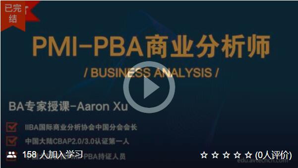 PMI-PBA是针对商业分析(业务需求分析)人员应运而生的专业认证。艾威培训经过4年的商业分析认证培训,与来自金融、汽车、IT、生产制造、现代服务业的学员交流总结出项目失败的最大原因(超过50%)是需求不明确或错误的需求;商业分析方法论及需求工具的缺失是艾威认为导致业务需求问题的根源,因而PMI推出了PMI-PBA认证来验证业务分析人员的专业经验与知识。本课程旨在帮助学员通过PMI-PBA认证考试。
